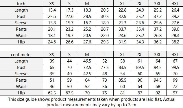 | centimeter | XS | S | M | L | XL | 2XL | 3XL | 4XL |
