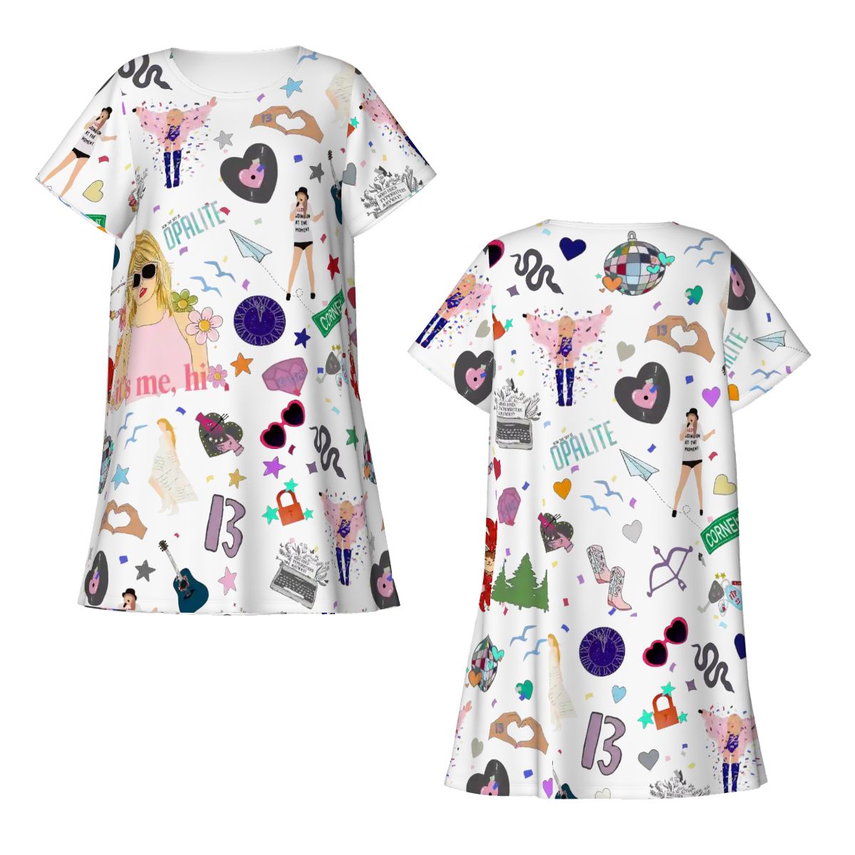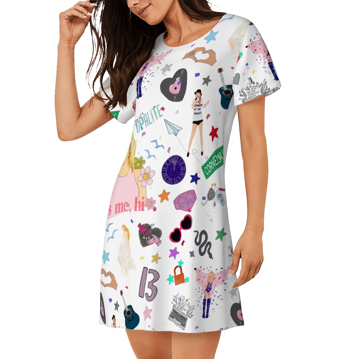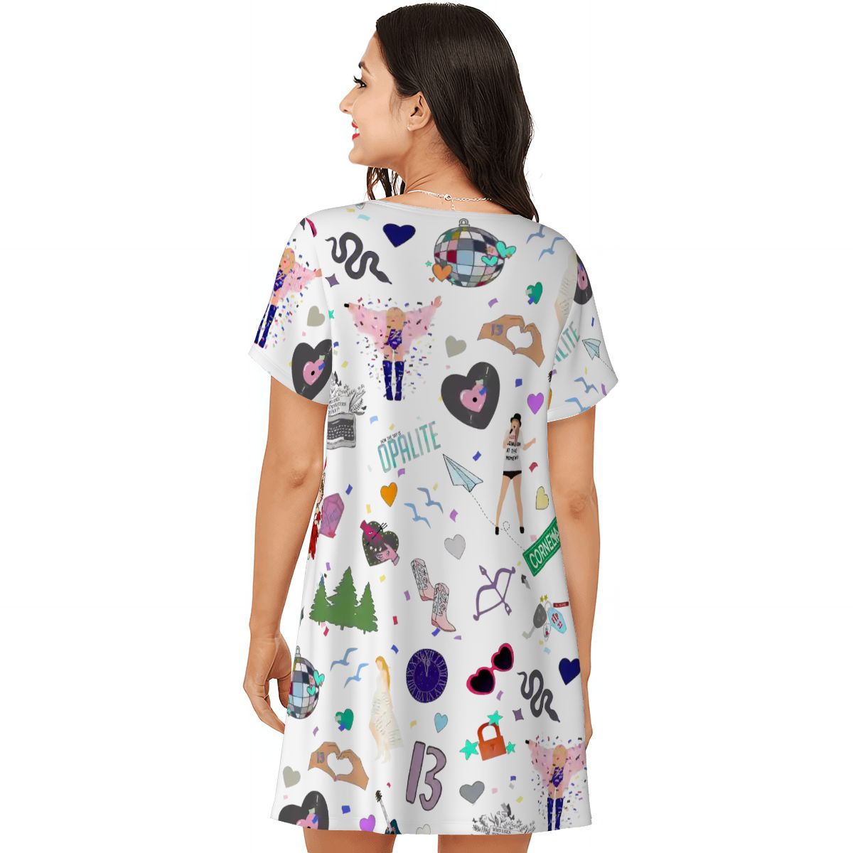 Women's Loose Short-Sleeve Nightgown Music Era Print